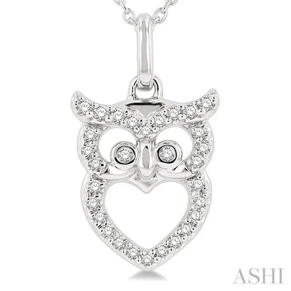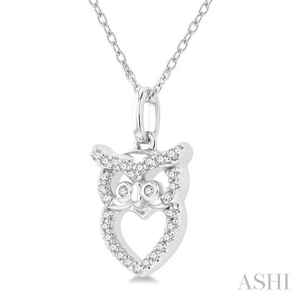 1/8 Ctw Owl Frame Petite Round Cut Diamond Fashion Pendant With Chain in 10K White Gold Image 4 Adler's Diamonds Saint Louis, MO