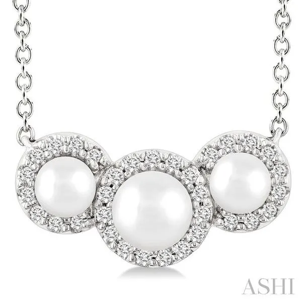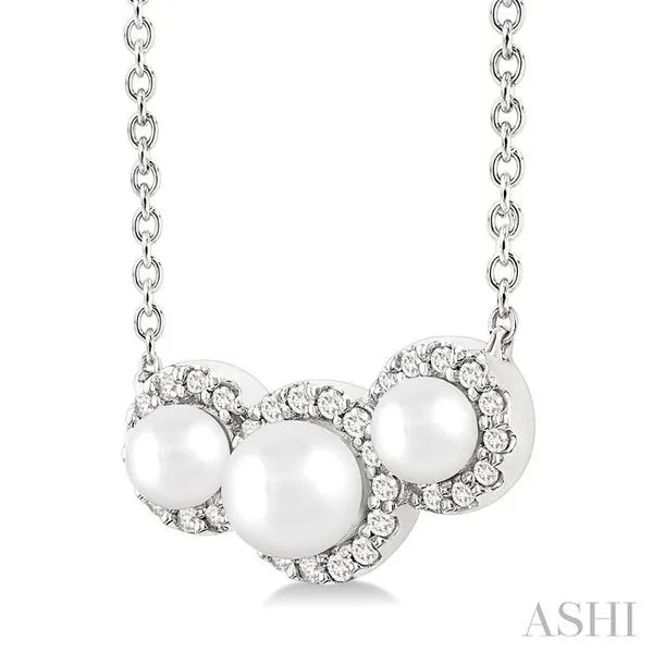 1/8 Ctw Past, Present & Future 4MM & 3MM Cultured Pearl and Round Cut Diamond Halo Pendant With Chain in 14K White Gold Image 3 Adler's Diamonds Saint Louis, MO