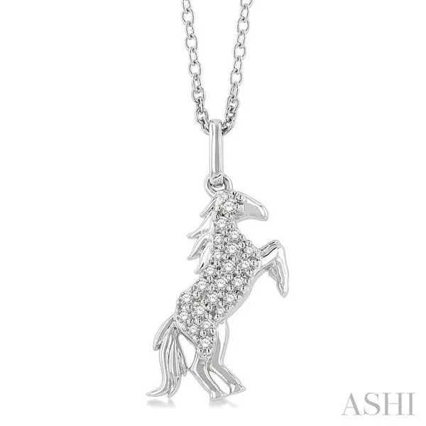 1/8 Ctw Petite Horse Round Cut Diamond Fashion Pendant With Chain in 10K White Gold Image 2 Adler's Diamonds Saint Louis, MO