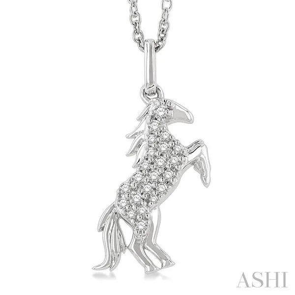 1/8 Ctw Petite Horse Round Cut Diamond Fashion Pendant With Chain in 10K White Gold Image 4 Adler's Diamonds Saint Louis, MO