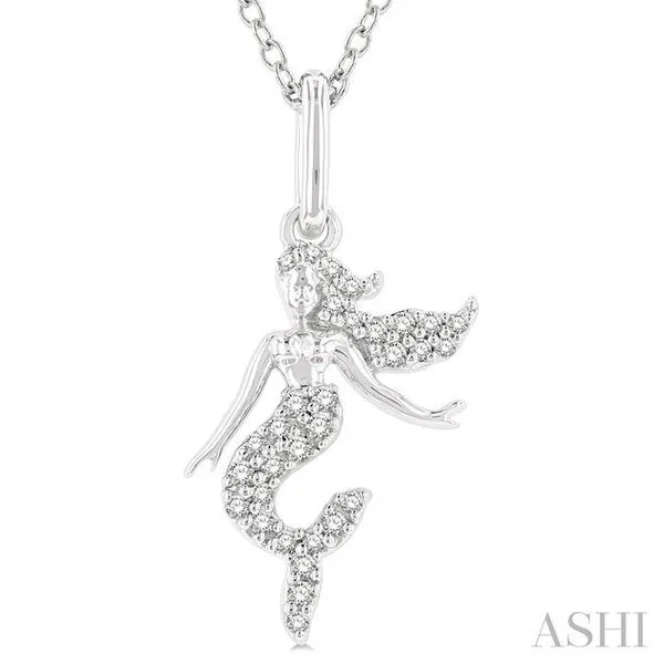 1/8 Ctw Petite Sea Life Mermaid Round Cut Diamond Fashion Pendant With Chain in 10K White Gold Image 2 Adler's Diamonds Saint Louis, MO