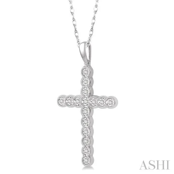 1/8 Ctw Round Cut Diamond Cross Pendant in 10K White Gold with chain