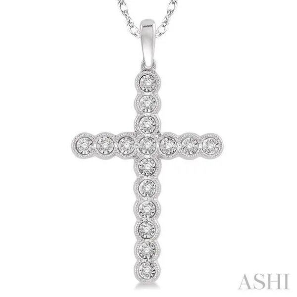 1/8 Ctw Round Cut Diamond Cross Pendant in 10K White Gold with chain Image 2 Adler's Diamonds Saint Louis, MO