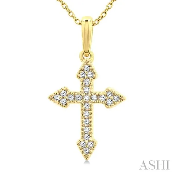1/8 Ctw Round Cut Diamond Cross Petite Pendant With Chain in 10K Yellow Gold Image 2 Adler's Diamonds Saint Louis, MO