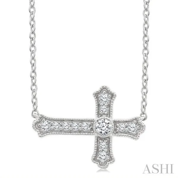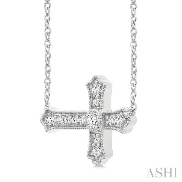 1/8 Ctw Round Cut Diamond Sideway Cross Pendant with Chain in 10K White Gold Image 2 Adler's Diamonds Saint Louis, MO