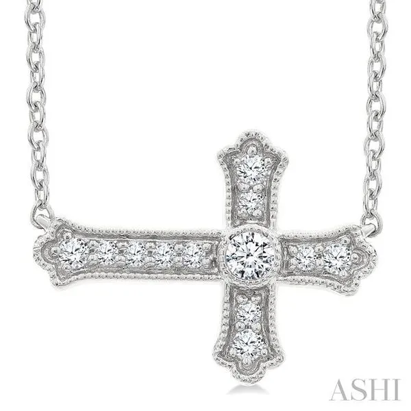 1/8 Ctw Round Cut Diamond Sideway Cross Pendant with Chain in 10K White Gold Image 4 Adler's Diamonds Saint Louis, MO