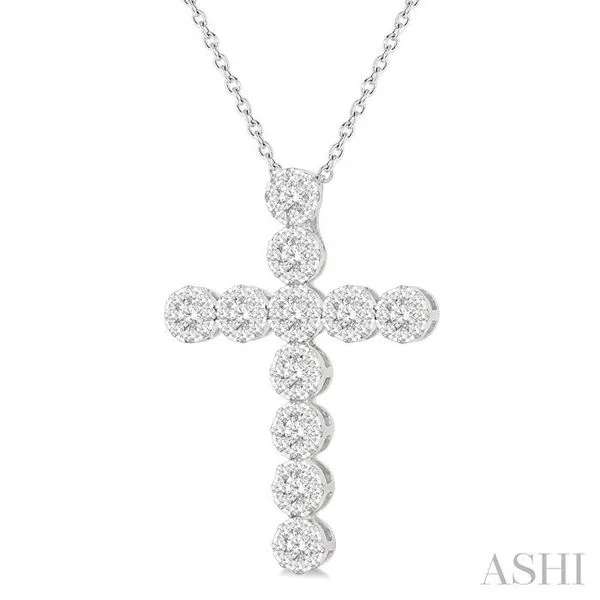 2 Ctw Lovebright Round Cut Diamond Cross Pendant in 14K White Gold with chain Image 3 Adler's Diamonds Saint Louis, MO