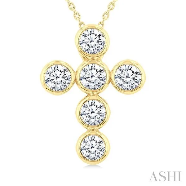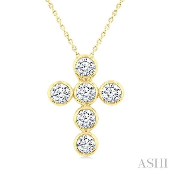 2 Ctw Round Cut Diamond 6-Stone Bezel Set Cross Pendant With Chain in 14K Yellow Gold Image 3 Adler's Diamonds Saint Louis, MO