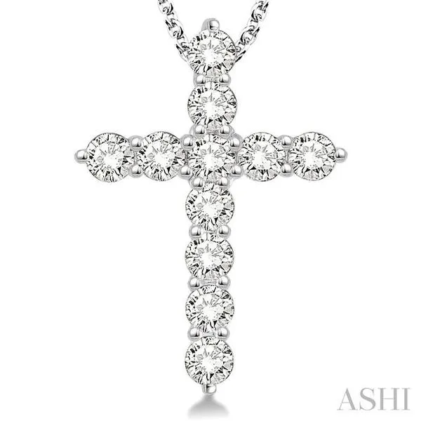2 Ctw Round Cut Diamond Cross Pendant in 14K White Gold with Chain Image 2 Adler's Diamonds Saint Louis, MO