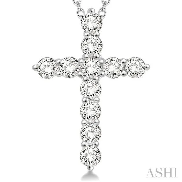 2 Ctw Round Cut Diamond Cross Pendant in 14K White Gold with Chain Image 2 Adler's Diamonds Saint Louis, MO