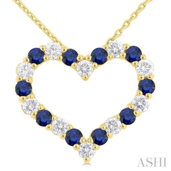 2.3 MM Round Cut Sapphire and 1/2 Ctw Open Heart Round Cut Diamond Precious Fashion Pendant With Chain in 14K Yellow Gold Image 2 Adler's Diamonds Saint Louis, MO