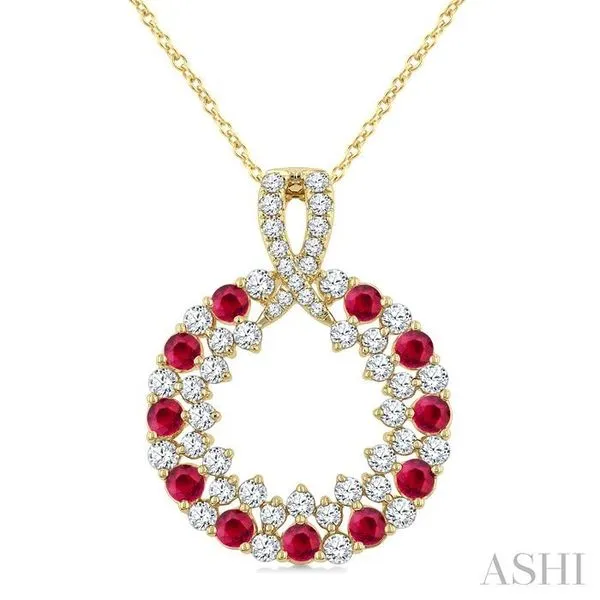 2.3 MM Round Shape Ruby and 3/4 Ctw Round Cut Diamond Precious Circle Pendant With Chain in 14K Yellow Gold Image 2 Adler's Diamonds Saint Louis, MO