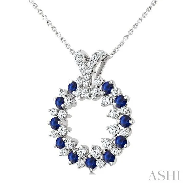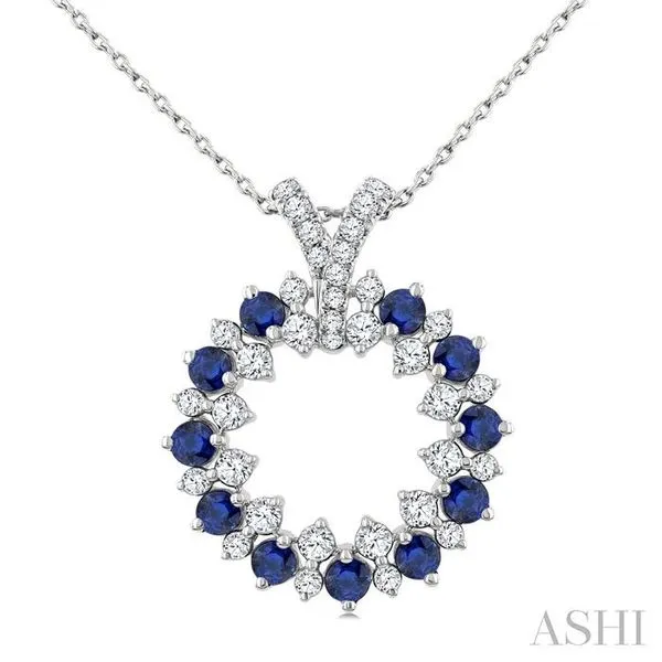 2.5 MM Round Shape Sapphire and 5/8 Ctw Round Cut Diamond Precious Circle Pendant With Chain in 14K White Gold Image 2 Adler's Diamonds Saint Louis, MO