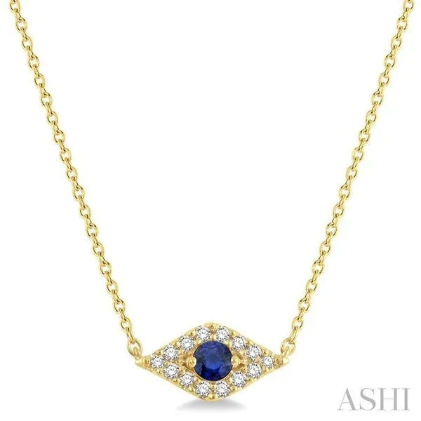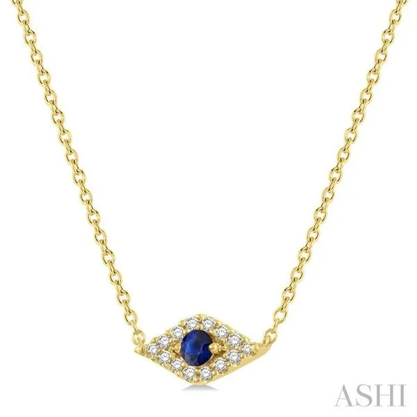 (314) 394-20862.60 MM Round Cut Sapphire and 1/10 Ctw Evil Eye Round Cut Diamond Precious Petite Fashion Pendant With Chain in 10K Yellow Gold
