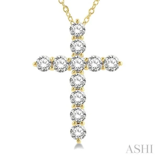 3 Ctw Latin Cross Round Cut Diamond Pendant With Chain in 14K Yellow Gold Image 3 Adler's Diamonds Saint Louis, MO