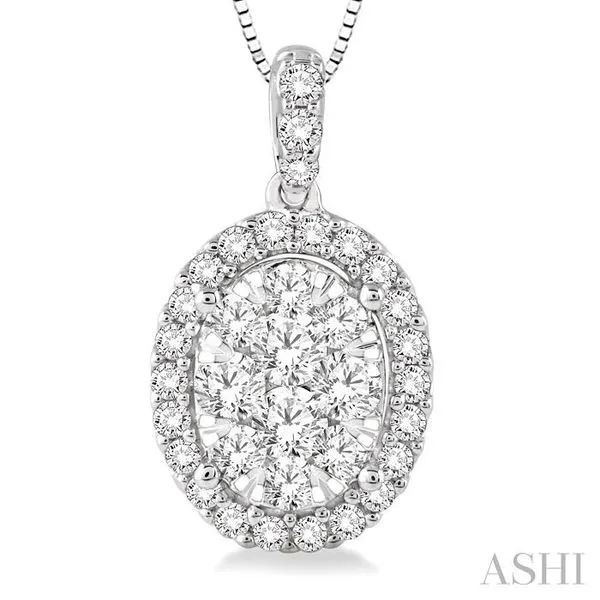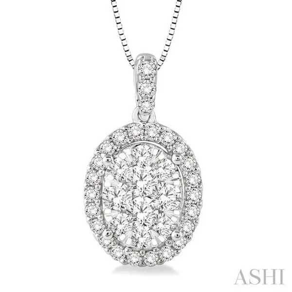 3/4 Ctw Oval Shape Diamond Lovebright Pendant in 14K White Gold with Chain Adler's Diamonds Saint Louis, MO