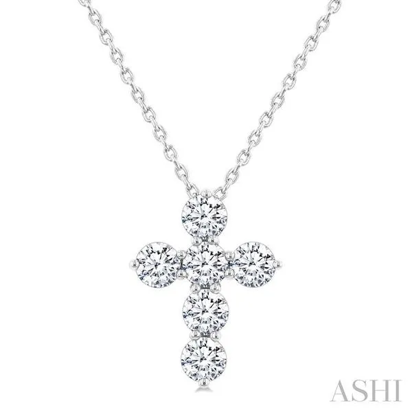 3/4 Ctw Round Cut Diamond Christian Cross 6-Stone Fashion Pendant With Chain in 14K White Gold Image 3 Adler's Diamonds Saint Louis, MO