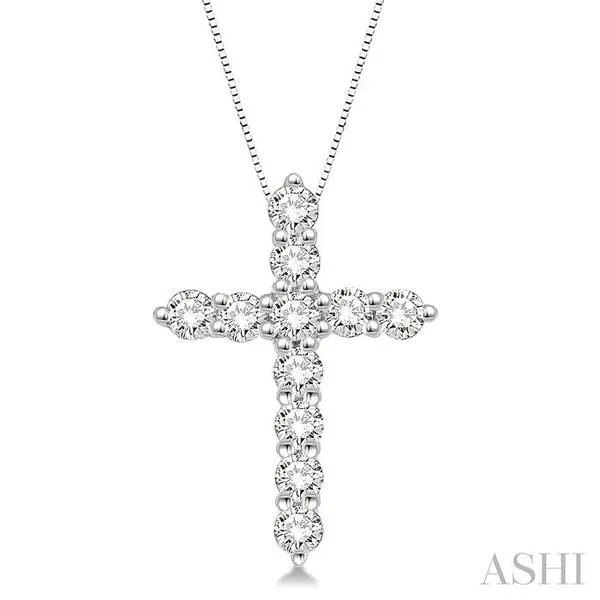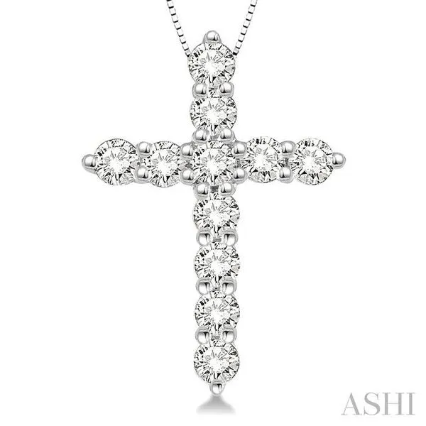 3/4 Ctw Round Cut Diamond Cross Pendant in 14K White Gold with Chain Image 2 Adler's Diamonds Saint Louis, MO