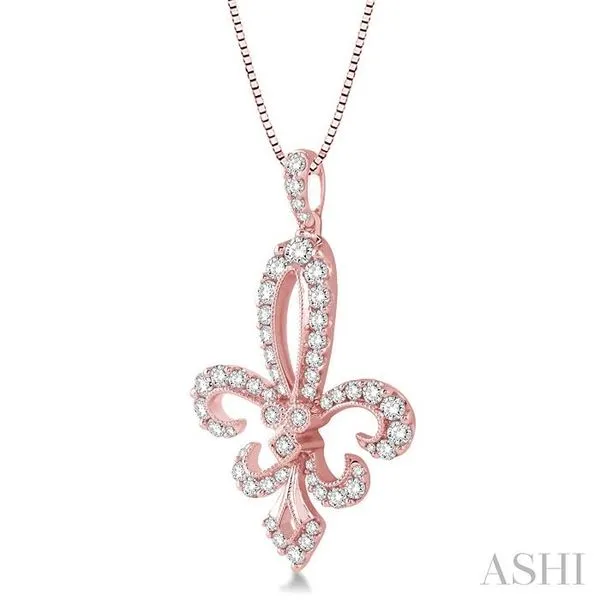 3/4 Ctw Round Cut Diamond Fleur De Lis Pendant in 14K Rose Gold with Chain Image 2 Adler's Diamonds Saint Louis, MO