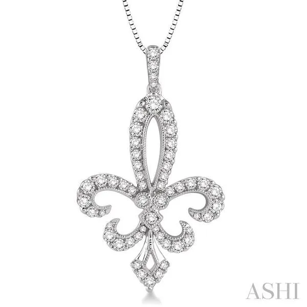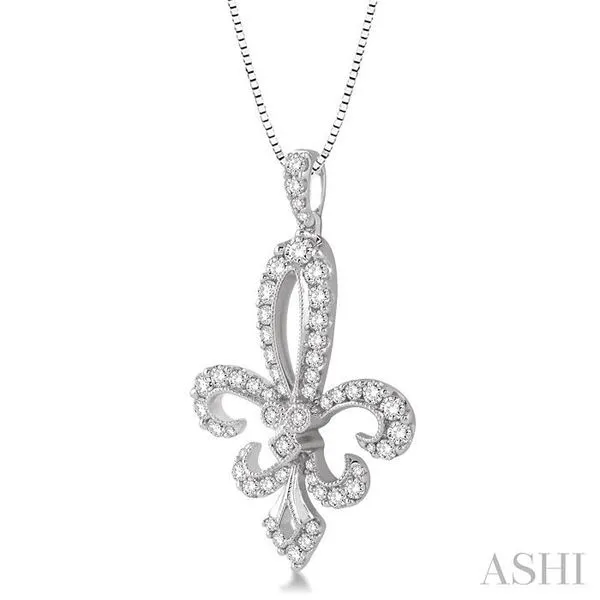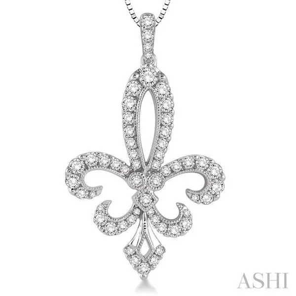 3/4 Ctw Round Cut Diamond Fleur De Lis Pendant in 14K White Gold with Chain Image 2 Adler's Diamonds Saint Louis, MO
