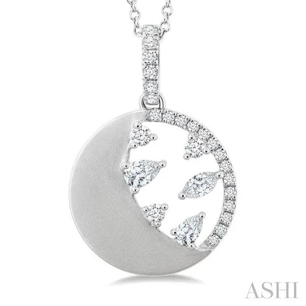 3/8 Ctw Crescent Accent Circle Marquise, Pear and Round Cut Diamond Fashion Pendant With Chain in 14K White Gold Adler's Diamonds Saint Louis, MO