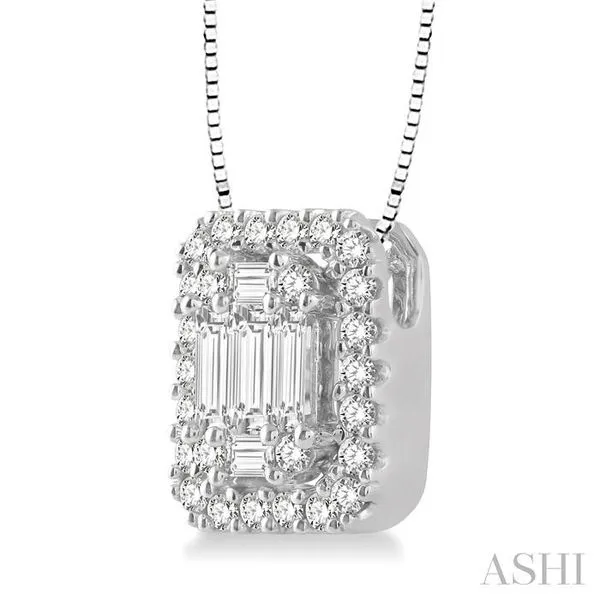 3/8 Ctw Octagonal Baguette & Round Cut Diamond Pendant With Box Chain in 14K White Gold Image 2 Adler's Diamonds Saint Louis, MO
