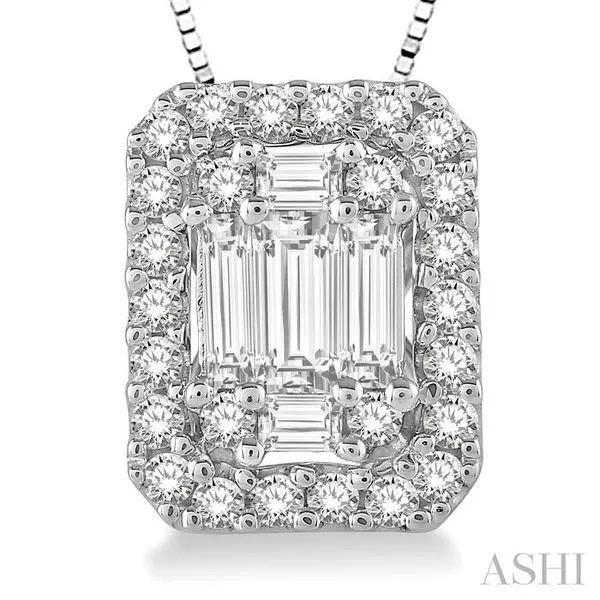 3/8 Ctw Octagonal Baguette & Round Cut Diamond Pendant With Box Chain in 14K White Gold Adler's Diamonds Saint Louis, MO