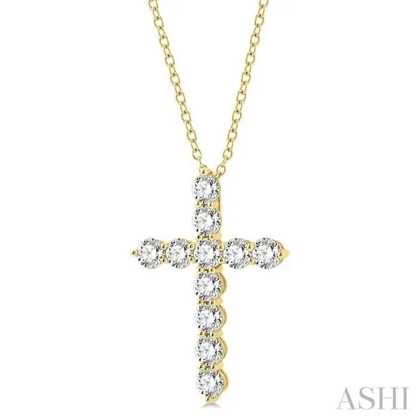 4 Ctw Round Cut Diamond Cross Pendant in 14K Yellow Gold with Chain Image 2 Adler's Diamonds Saint Louis, MO