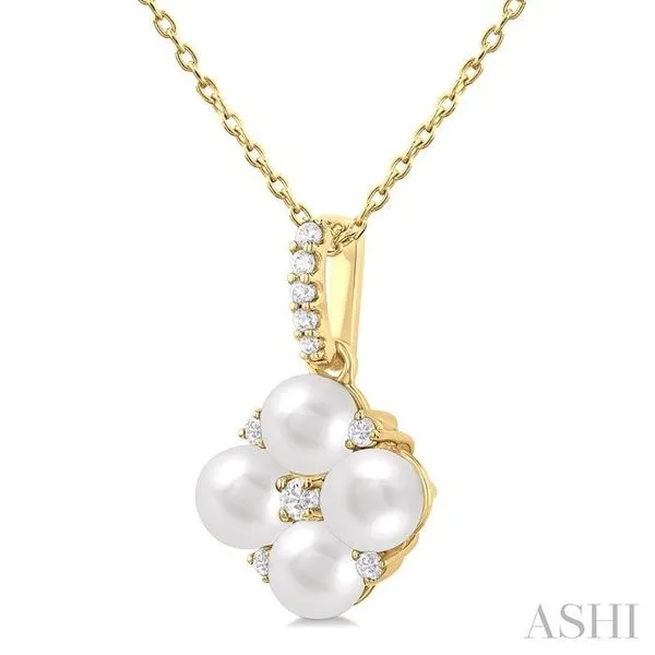4 MM Floral Round Shape Cultured Pearl and 1/10 Ctw Round Cut Diamond Fashion Pendant With Chain in 10K Yellow Gold Image 3 Adler's Diamonds Saint Louis, MO