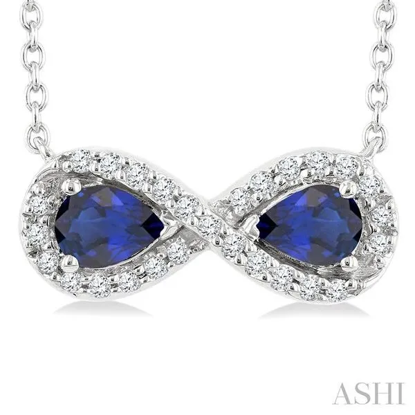 4X3 MM Pear Shape Sapphire and 1/10 Ctw Round Cut Diamond Precious Infinite Halo Pendant With Chain in 10K White Gold Image 2 Adler's Diamonds Saint Louis, MO