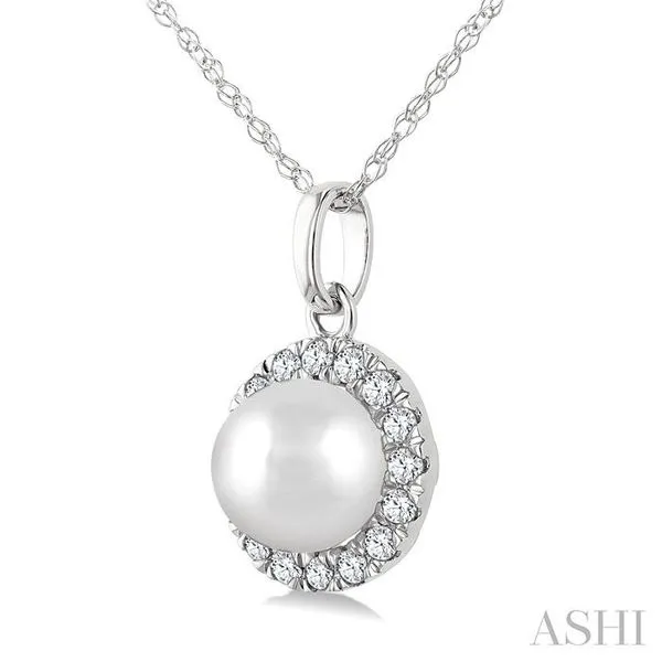 5 MM Cultured White Pearl and 1/20 Ctw Single Cut Diamond Halo Pendant With Chain in 10K White Gold Image 3 Adler's Diamonds Saint Louis, MO