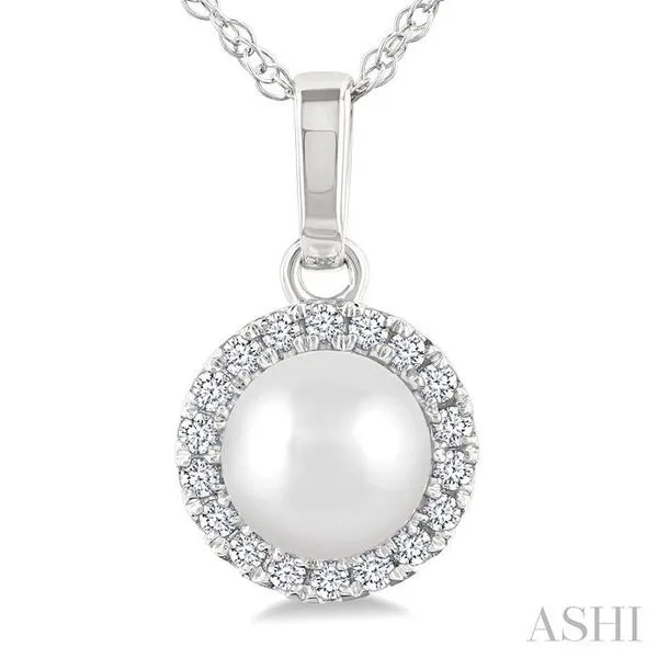 5 MM Cultured White Pearl and 1/20 Ctw Single Cut Diamond Halo Pendant With Chain in 10K White Gold Adler's Diamonds Saint Louis, MO