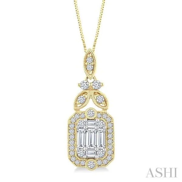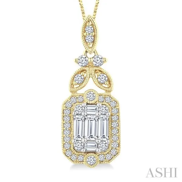 5/8 Ctw Fusion Baguette and Round Cut Diamond Fashion Pendant With Chain in 14K Yellow and White Gold Image 2 Adler's Diamonds Saint Louis, MO