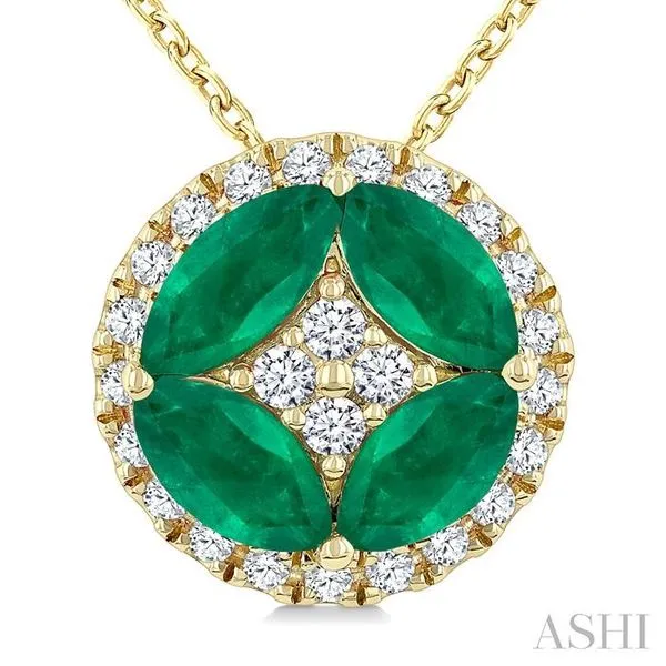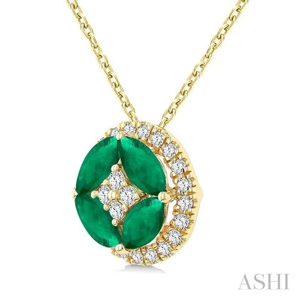 5x2.5 MM Marquise Shape Emerald and 1/6 Ctw Round Cut Diamond Fashion Precious Pendant With Chain in 10K Yellow Gold Image 3 Adler's Diamonds Saint Louis, MO
