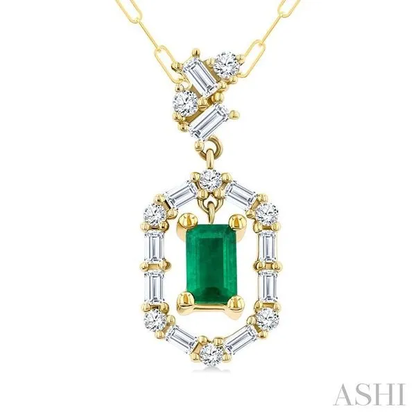 5x3 MM Emerald Cut and 1/3 Ctw Baguette & Round Cut Diamond Precious Fashion Pendant With Chain in 14K Yellow Gold Image 2 Adler's Diamonds Saint Louis, MO