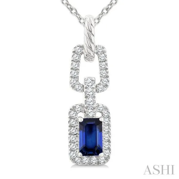 5X3 MM Octagon Shape Sapphire and 1/6 Ctw Round Cut Diamond Link Precious Pendant With Chain in 14K White Gold Image 2 Adler's Diamonds Saint Louis, MO