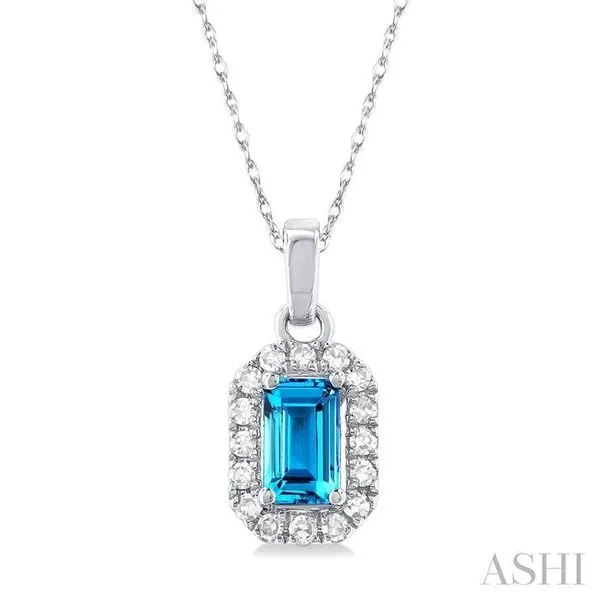 5x3 MM Octagonal Shape Blue Topaz and 1/20 Ctw Single Cut Diamond Halo Semi-Precious Pendant with Chain in 10K White Gold Image 2 Adler's Diamonds Saint Louis, MO