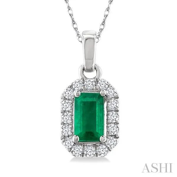 5x3 MM Octagonal Shape Emerald and 1/20 Ctw Single Cut Diamond Halo Precious Pendant with Chain in 10K White Gold Adler's Diamonds Saint Louis, MO