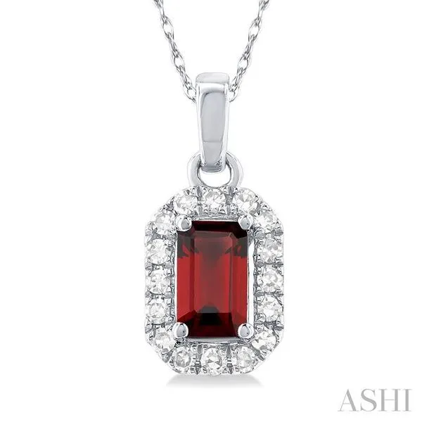 5x3 MM Octagonal Shape Garnet and 1/20 Ctw Single Cut Diamond Halo Semi-Precious Pendant with Chain in 10K White Gold Image 2 Adler's Diamonds Saint Louis, MO
