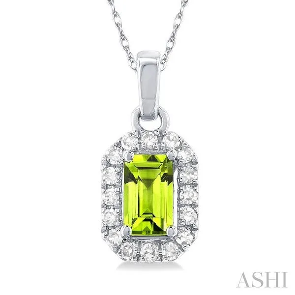 5x3 MM Octagonal Shape Peridot and 1/20 Ctw Single Cut Diamond Halo Semi-Precious Pendant with Chain in 10K White Gold Image 2 Adler's Diamonds Saint Louis, MO