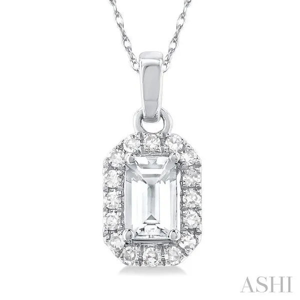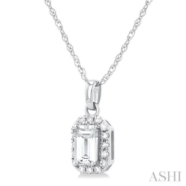 5x3 MM Octagonal Shape White Topaz and 1/20 Ctw Single Cut Diamond Halo Semi-Precious Pendant with Chain in 10K White Gold Image 3 Adler's Diamonds Saint Louis, MO