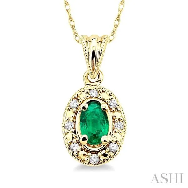 5x3 MM Oval Shape Emerald and 1/20 Ctw Single Cut Diamond Pendant in 14K Yellow Gold with Chain Adler's Diamonds Saint Louis, MO