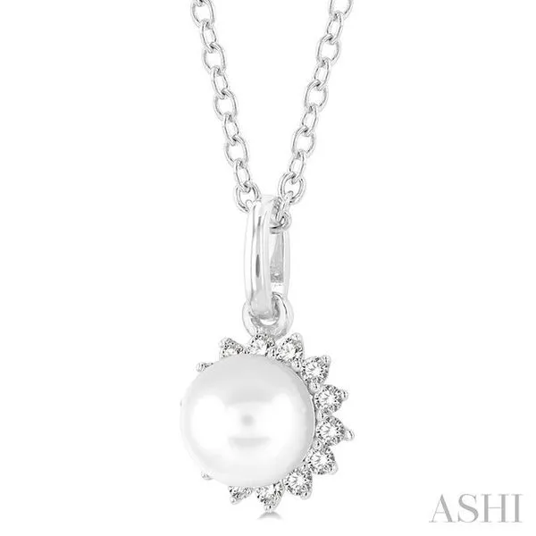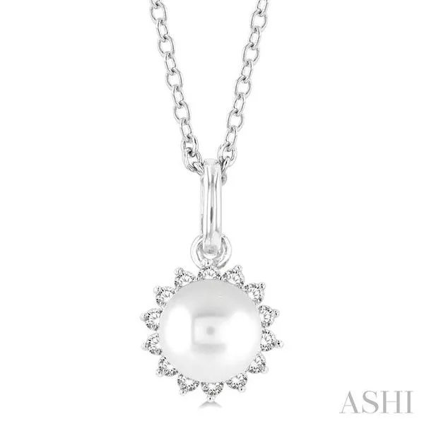 6 MM Round Shape Cultured Pearl and 1/10 Ctw Petite Round Cut Diamond Fashion Pendant With Chain in 10K White Gold Image 4 Adler's Diamonds Saint Louis, MO