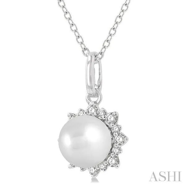 6 MM Round Shape Cultured Pearl and 1/10 Ctw Petite Sun Round Cut Diamond Fashion Pendant With Chain in 10K White Gold Image 3 Adler's Diamonds Saint Louis, MO