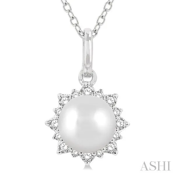 6 MM Round Shape Cultured Pearl and 1/10 Ctw Petite Sun Round Cut Diamond Fashion Pendant With Chain in 10K White Gold Adler's Diamonds Saint Louis, MO