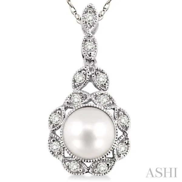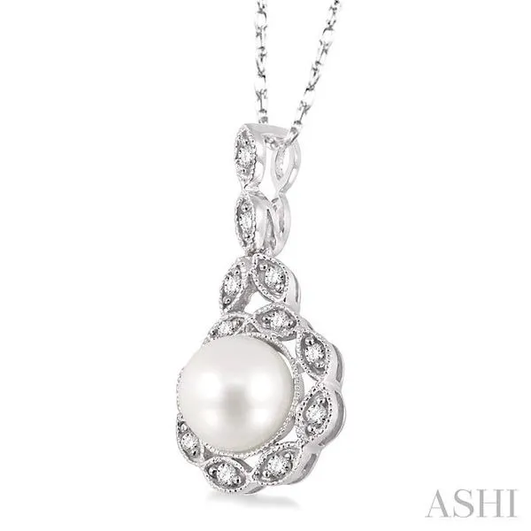 6.5 MM Cultured Pearl and 1/10 Ctw Single Cut Diamond Pendant in 14K White Gold with Chain Image 3 Adler's Diamonds Saint Louis, MO