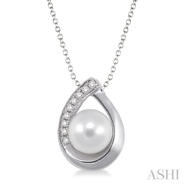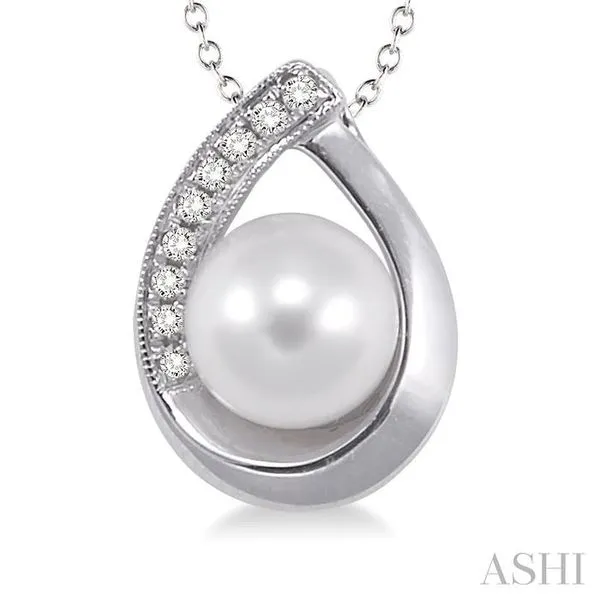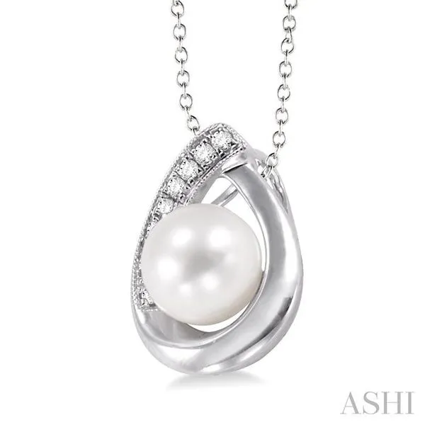 6.5 MM Cultured Pearl and 1/20 Ctw Single Cut Diamond Pendant in Sterling Silver with chain Image 4 Adler's Diamonds Saint Louis, MO