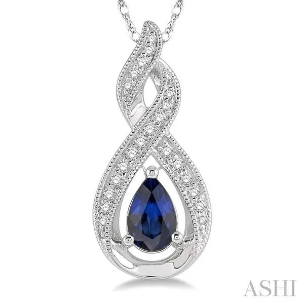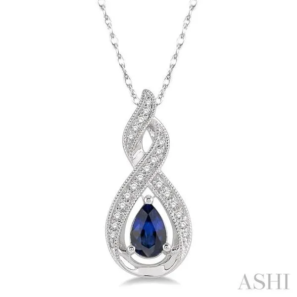 6x4 MM Entwined Pear Shape Sapphire and 1/10 Ctw Round Cut Diamond Precious Pendant With Chain in 10K White Gold Image 2 Adler's Diamonds Saint Louis, MO