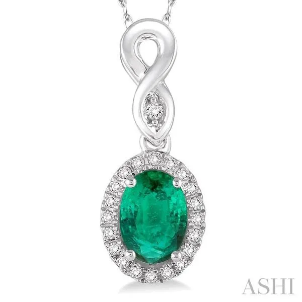 6x4 MM Oval Cut Emerald and 1/10 Ctw Round Cut Diamond Pendant in 14K White Gold with Chain Image 2 Adler's Diamonds Saint Louis, MO