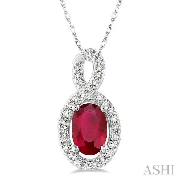 6x4 MM Oval Cut Ruby and 1/10 Ctw Round Cut Diamond Pendant in 10K White Gold with Chain Image 3 Adler's Diamonds Saint Louis, MO
